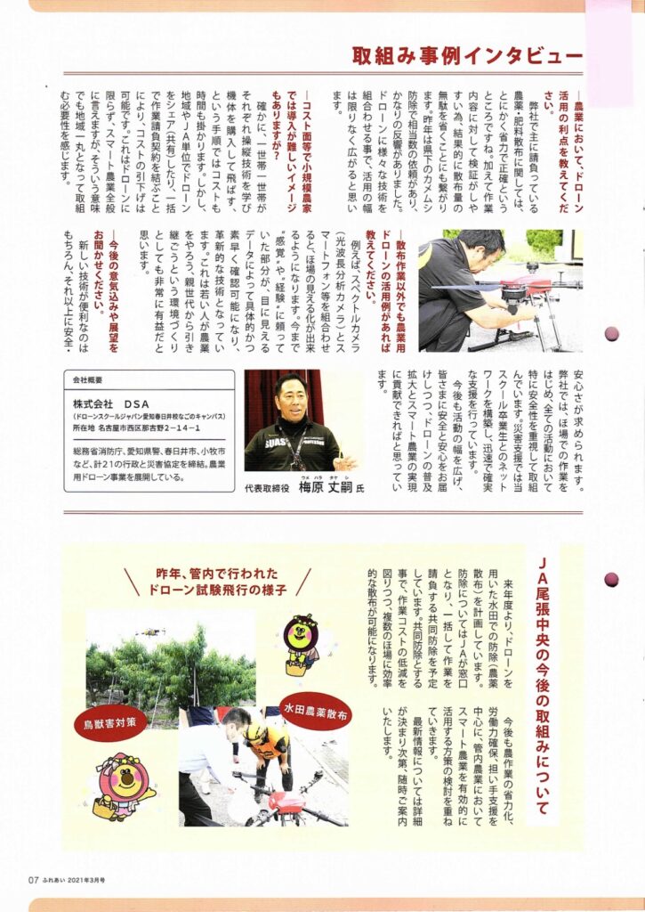 今回DSAは、JAさんの情報誌「ふれあい」の3月号に掲載していただきました。