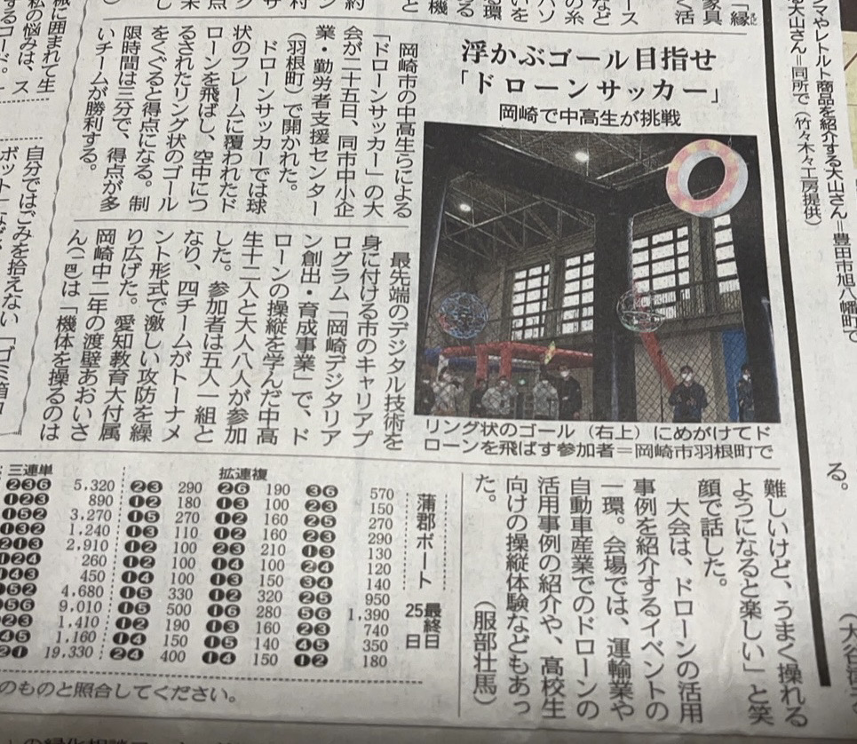 西や東からもドローンサッカーの猛者どもにもご参加をいただき、 岡崎デジタリアンの学生チームと合同にバトルを行いました。